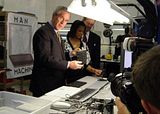 Man & Machine owner and Big Cheese Clif Broumand shows President Bush a fully functioning Blackberry created by the Man & Machine engineering team.